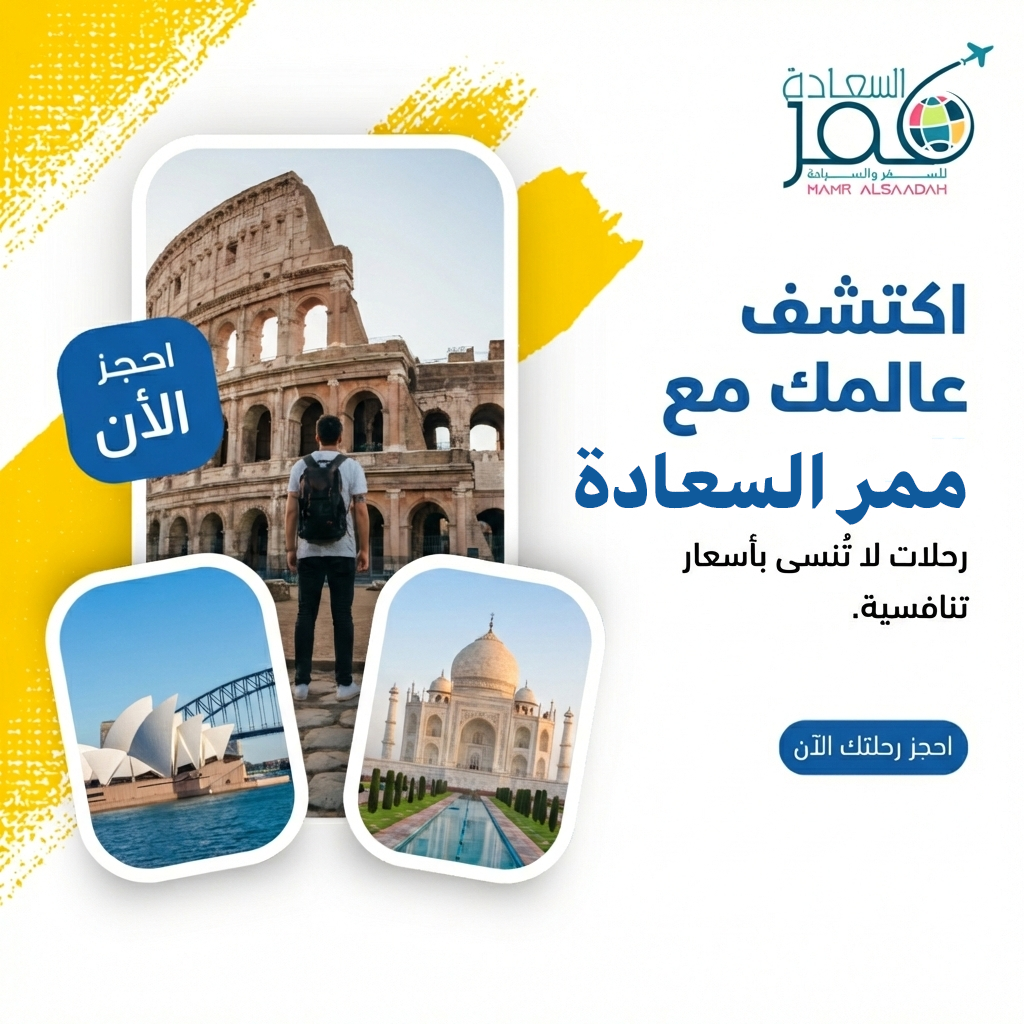 نحن في ممر السعادة نقدم لك تجربة سفر مميزة، باقات سياحية مخصصة، وجولات تأخذك إلى أجمل الوجهات حول العالم بكل راحة وأمان دعنا نحول أحلامك إلى ذكريات رحلات لاتنسي بأسعار تنافسية .